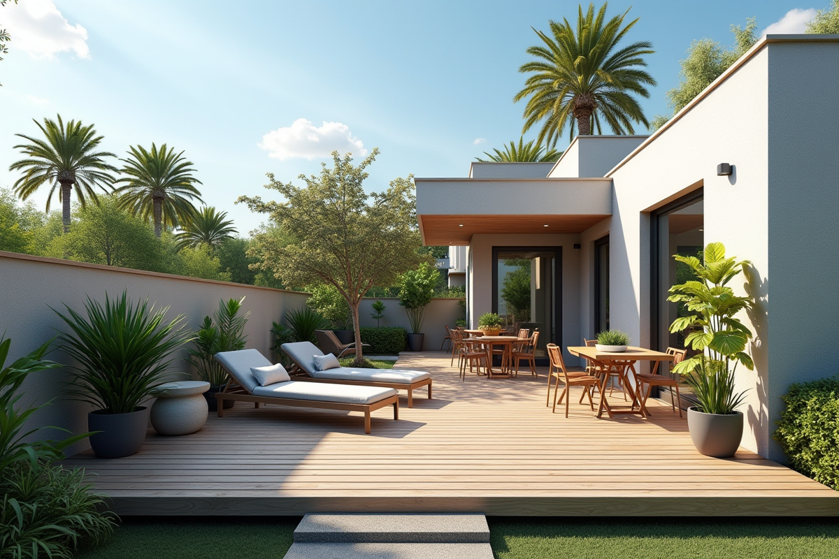 Soigner l’harmonie avec l’aspect extérieur du bâtiment s’impose : les couleurs et matériaux choisis doivent prolonger l’esprit de la façade. Une terrasse tropézienne sur toit plat accentue la modernité d’une maison, tout comme une extension maison pensée dans la continuité. L’éclairage, quant à lui, révèle les volumes et prolonge les soirées, transformant chaque détail en scène à ciel ouvert.